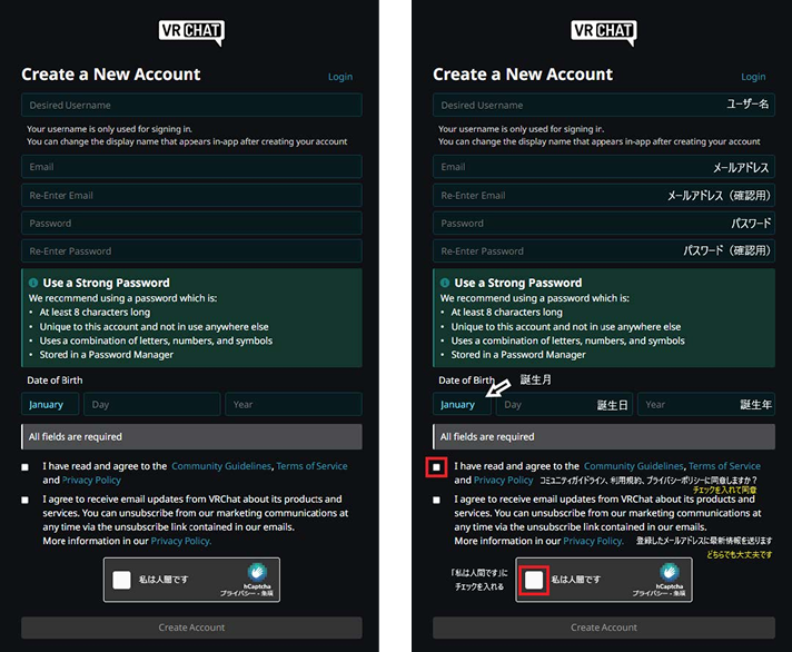 入力した情報を確認し、問題なければ「Create Account」をクリックしてください。