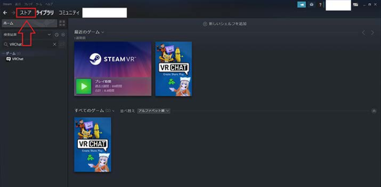 1. Steamのホーム画面左上の「ストア」をクリックします。 -