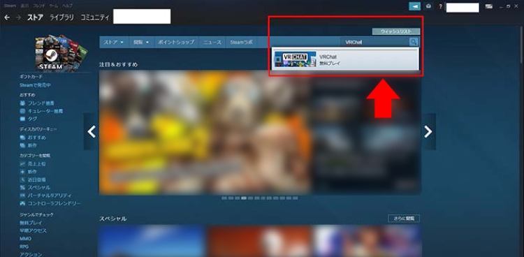 2. 右上の検索欄に「VRChat」と入力すると、VRChatが出てくるのでクリックします。 -