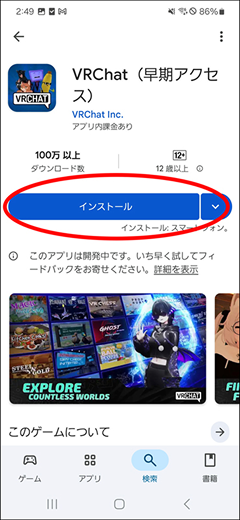 4. 「VRChat (Beta)」が表示されたら、「インストール」をタップします。