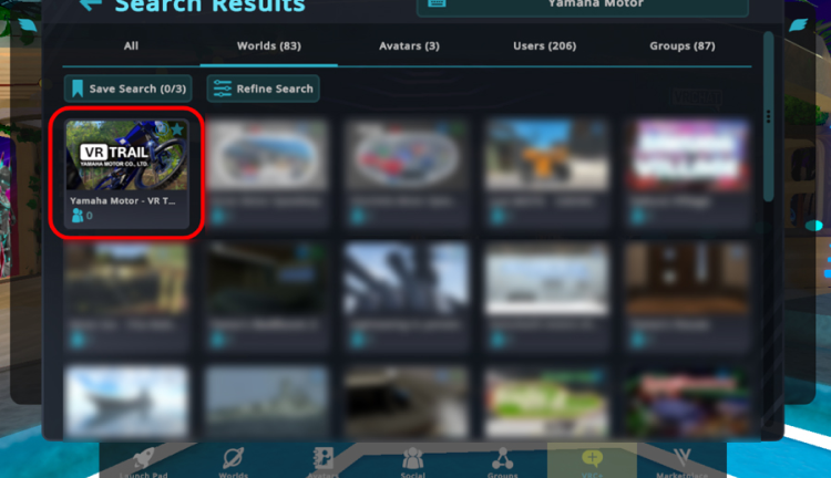 「Yamaha Motor - VR TRAIL」のワールドを選択します。