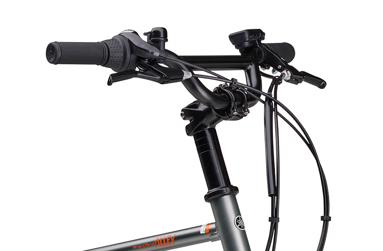 - BMXスタイルのブリッジハンドルに、アヘッドステムとスペーサーを組み合わせたデザイン。スポーティで力強いルックスが魅力です。