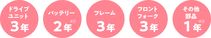 電動アシスト自転車にとって、とても重要な構成部品を下記の期間保証します。