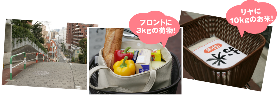 - 本映像で登場する急坂の走行は、アシスト性能を検証したもので、急坂での使用を推奨するものではありません。