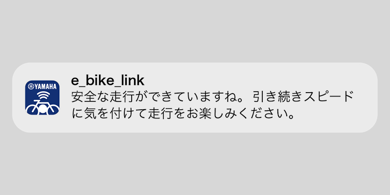 既定の速度(30Km/h)以下の安全運転をした時や、ライトオン、走行での疲労による危険を避けるための通知など、セーフティライドをアシストする情報を提供します。