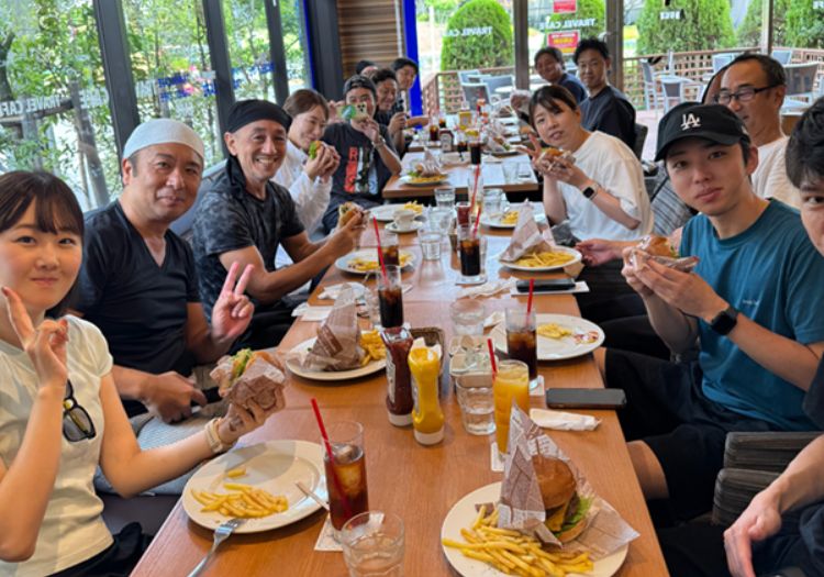 ボリューム満点のハンバーガーやフライドポテトを囲みながら、自然と会話が弾みます。