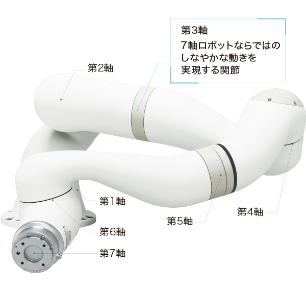 7軸全てにトルクセンサを内蔵しており、コンプライアンス制御によるしなやかな動きを実現できます。
