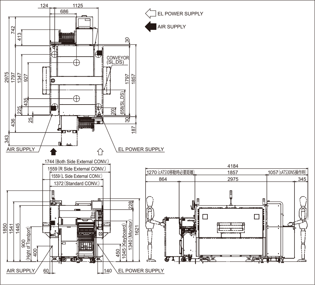 | 部品品種数 | 固定プレート:最大140種(8mm幅テープフィーダー換算) 一括交換台車:最大128種(8mm幅テープフィーダー換算) トレイ:30種(固定式:sATS30装備時、最大)、10種(台車式:cATS10装備時、最大) |