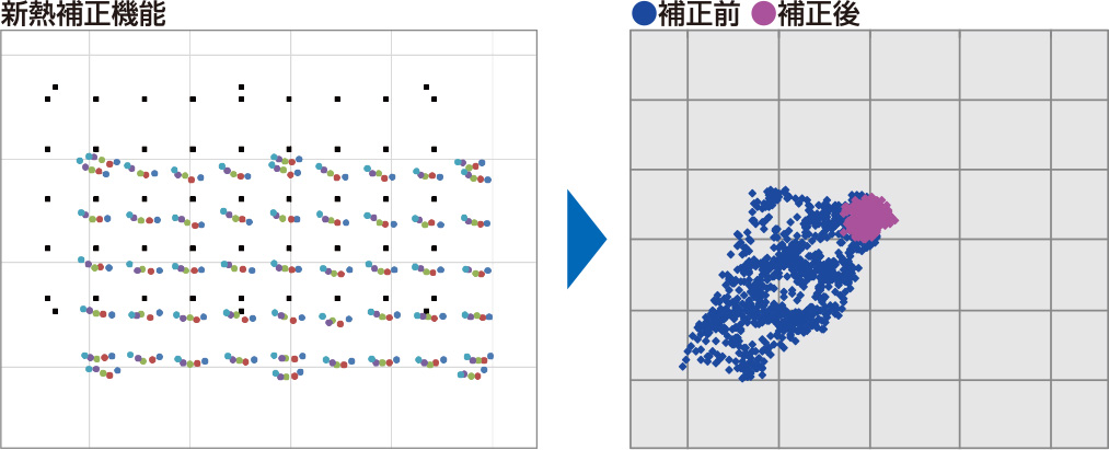 機内にマーカーを設置し、定期認識・補正することで、熱変化による搭載精度の劣化を軽減。稼働時間・状況に左右されずに高精度な搭載を実現。