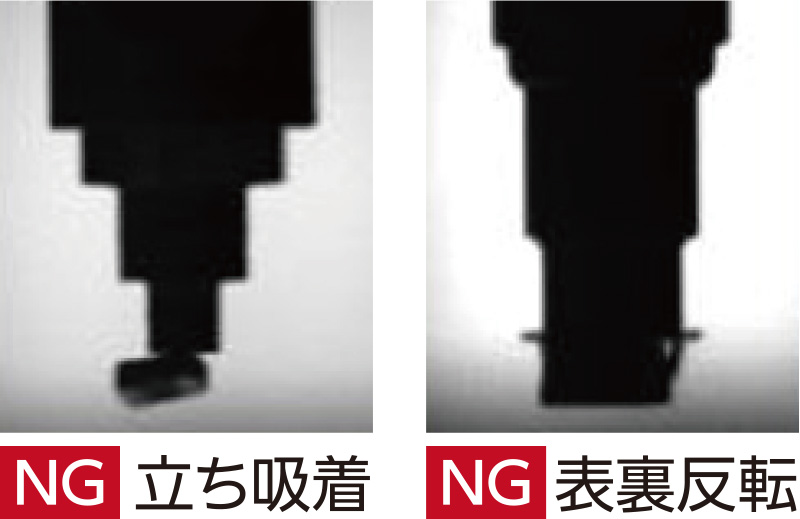 サイドビューカメラで搭載前に部品の姿勢を確認し、不良発生要因をリジェクト。不良を発生させない生産へ。