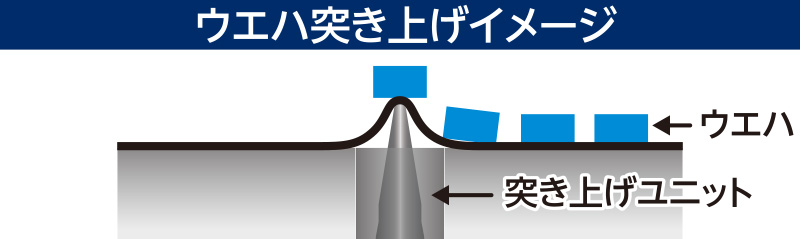 ウエハの突き上げユニットを2本搭載し、異なるダイサイズの品種に段取り替えなしで対応可能。オートノズルチェンジャーとの組み合わせで汎用性を強化。