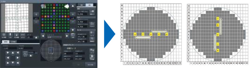 生産中にウェハの角度やピッチを自動補正し、段取り時のティーチング作業負荷とミスを低減。