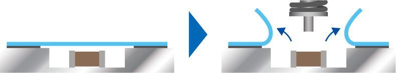 小型チップ部品や薄型部品の破損・変形の防止や、圧力をかける必要がある部品への確実な押し込みが可能。