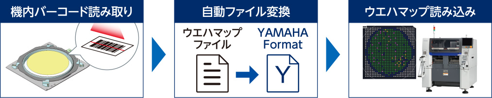ウエハリング上のバーコードからウエハマップを読み込み様々なフォーマットからの自動変換にも対応。